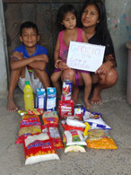 子どもたちの家を一軒一軒まわって配ってくださったのは、第3弾のアンヘルさん。セットには子どもの日ならではの小さなお菓子も入れてくれました。