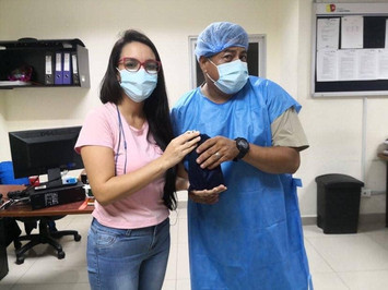間に入ってくださったパラレス姉妹は、自身が感染した時の、医者に見てすらもらえなかった経験や、医療現場の混沌を目の当たりにした事から、「どうか グアヤキルの医療従事者を助けて欲しい」と、このプロジェクトに声を掛けて下さり、病院のドクターに医療物資を引き渡すところまで、手伝って下さいました。 <渡したキット> グアスモ・スル総合病院 Covit-19に対応する救急のドクター40名分と、アシスタントスタッフ7名分の防護キット